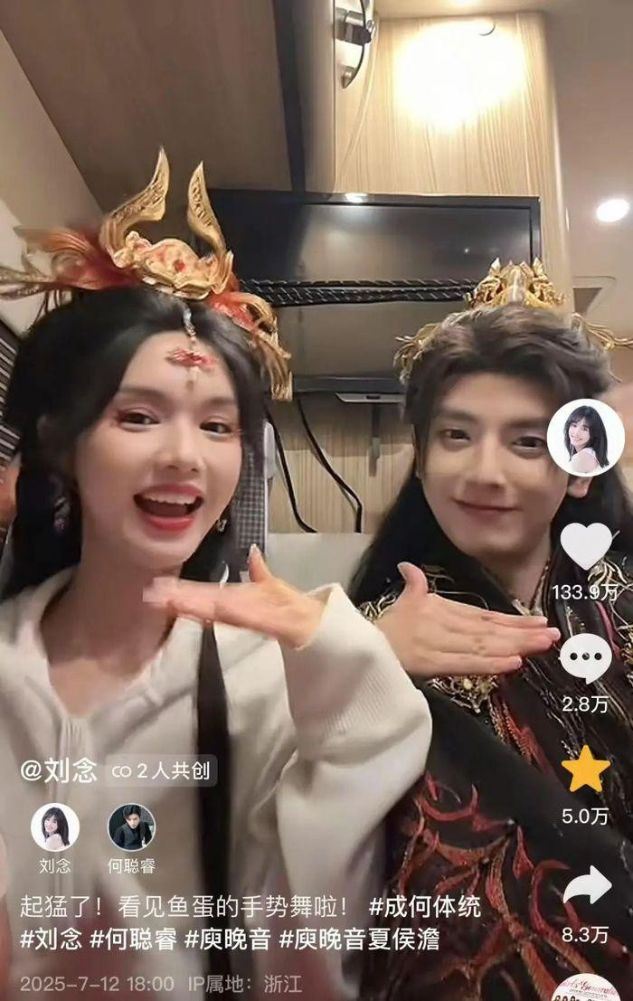 这是今年“百念好何”(刘念、何聪睿CP名)的三搭,此前他们还在今年3月播出《请君入我怀》,6月《成何体统》,其中《请君入我怀》红果观看量破20亿,《成何体统》在爱奇艺站内热度值破6000。CP粉正在组成演员的核心粉丝群体,刘念的抖音中,热度最高的视频绝大多数都与何聪睿有关,两人的共创手势舞视频点赞数破120万,剧播期双双登顶各大短剧演员榜。